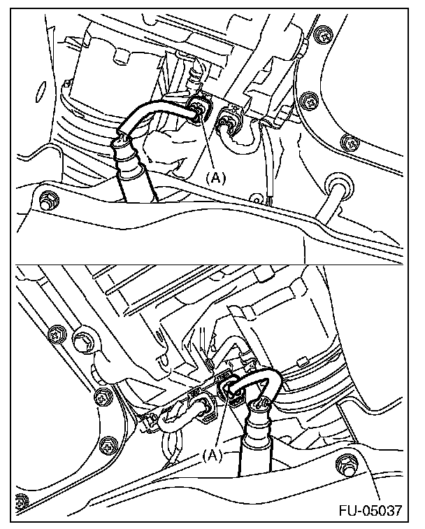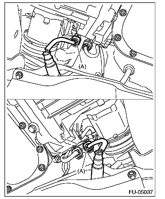 3. Disconnect the connector (A) of the front oxygen (A/F) sensor.