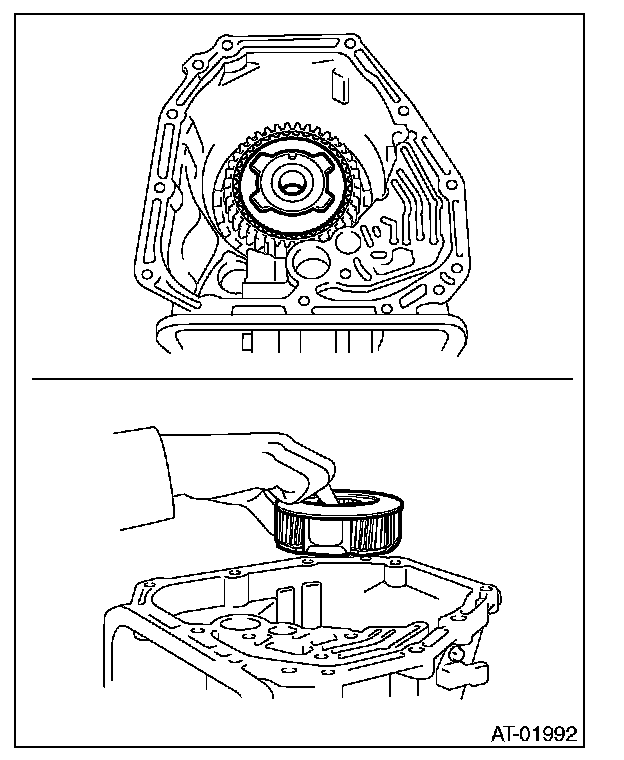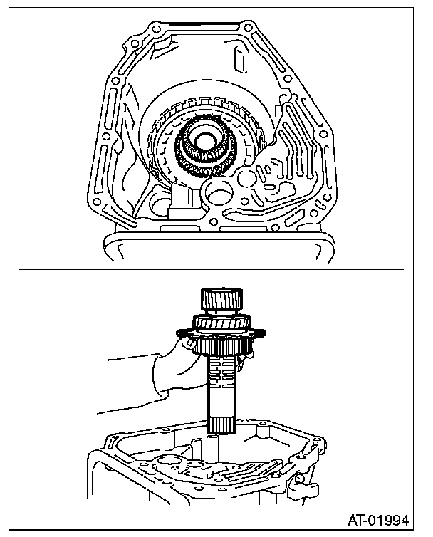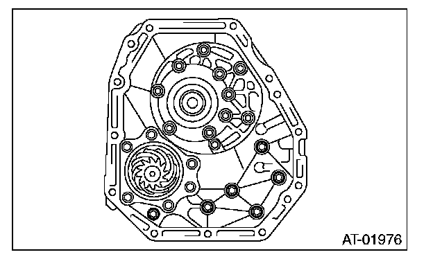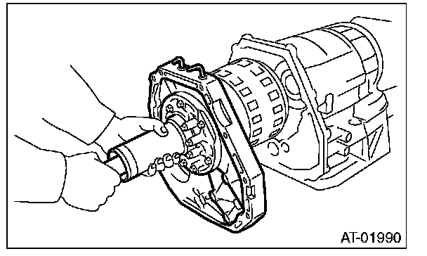 (2) Install the oil pump cover to AT main case while supporting the input clutch shaft and oil pump housing with your hand.