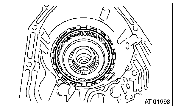 ^ Check the clearance of the input clutch. Measure the clearance "L" between snap ring and retaining plate using a thickness gauge. If it is out of specification, replace the entire input clutch assembly.