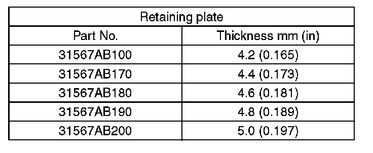 B: Clearance between retaining plate and snap ring