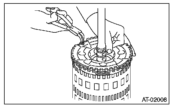 10) Install the snap ring of the reverse brake.