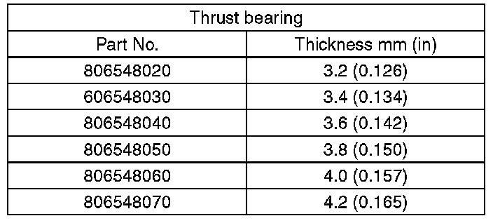 Select one thrust bearing from the table to adjust clearance within 0.25 - 0.55 mm (0.0098 - 0.0217 in).
