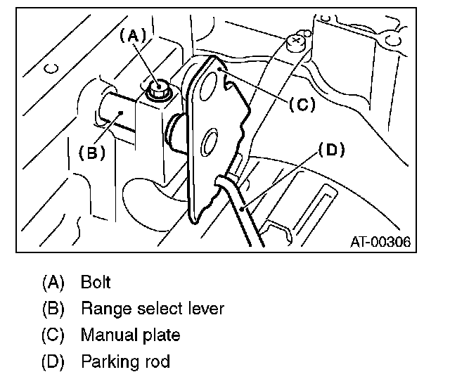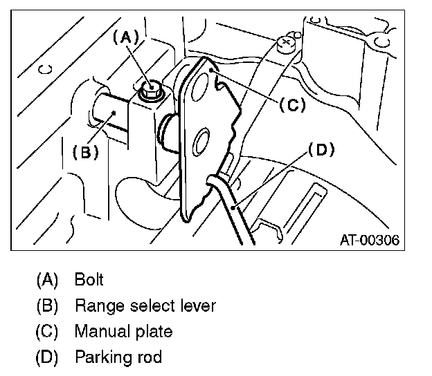 8) Remove the bolts securing range select lever, and then remove the select lever, manual plate and parking rod.