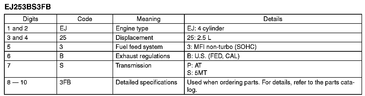 The model number label indicates: the applied model, the option code, the trim code, the engine type, the transmission type, and the exterior color code. This information is helpful when placing orders for parts.