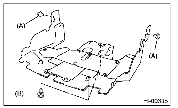2. Remove clips (A) in front fender and bolts (B), then remove the front under cover.