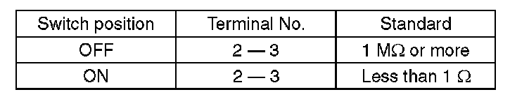 1) Check the resistance between the VDC OFF switch terminals.