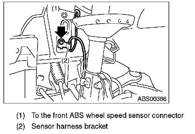 2) Disconnect the ABS wheel speed sensor connector located next to the front strut mounting house in the engine compartment.