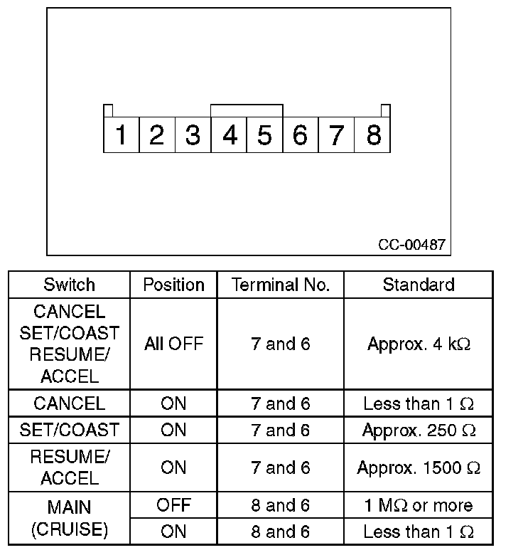 3. Replace the cruise control command switch if the inspection result is not within the standard value.