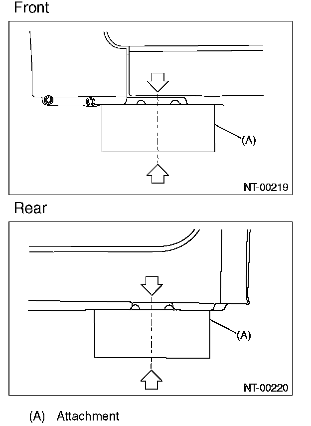 - Model without side sill spoiler For the models without side sill spoiler, align the center of attachment with the center of vehicle cutout portions.