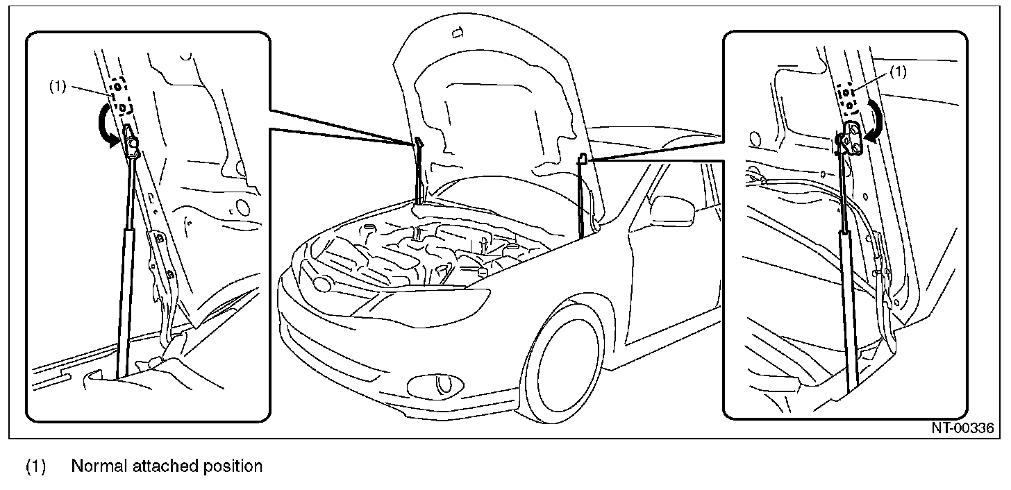 2. When wider hood opening is necessary, set the damper stay below as shown in the figure.