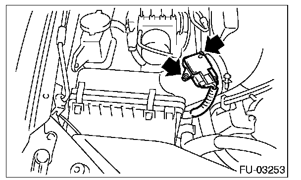 2. Disconnect the connector from the mass air flow and intake air temperature sensor, and remove the mass air flow and intake air temperature sensor.