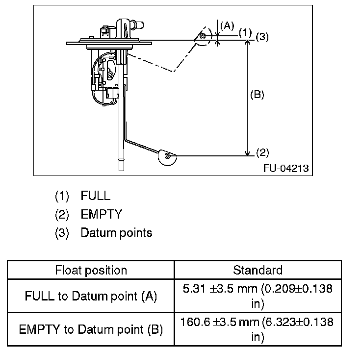Measure the fuel sub level sensor float position.