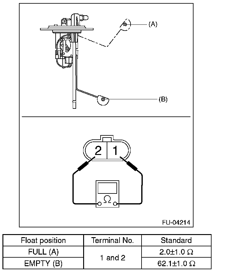 Measure the resistance between fuel sub level sensor terminals.