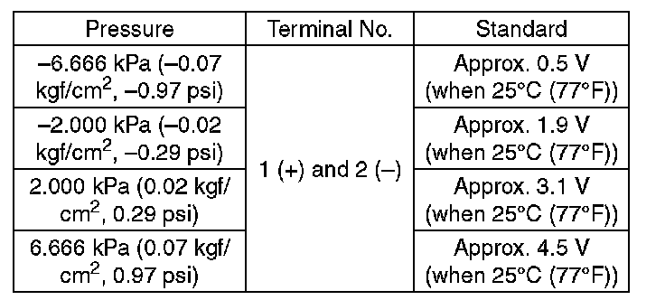 CAUTION: Do not apply pressure out of the range of -10 - 20 kPa (-0.1 - 0.2 kgf/sq.cm, -1.45 - 2.90 psi). Doing so may damage the fuel tank pressure sensor.