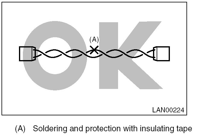 - When repairing the harness, connect the wires using soldering and protect it with insulating tape etc.