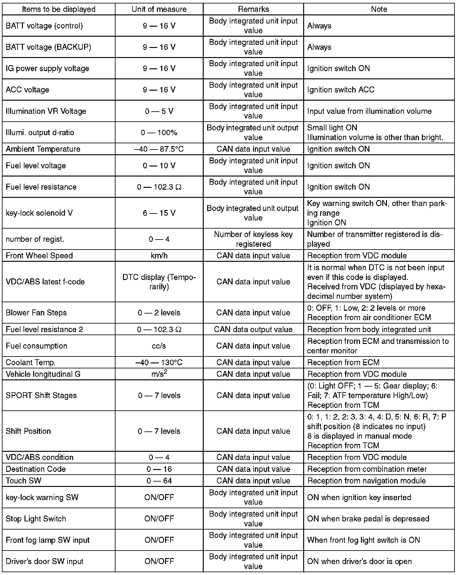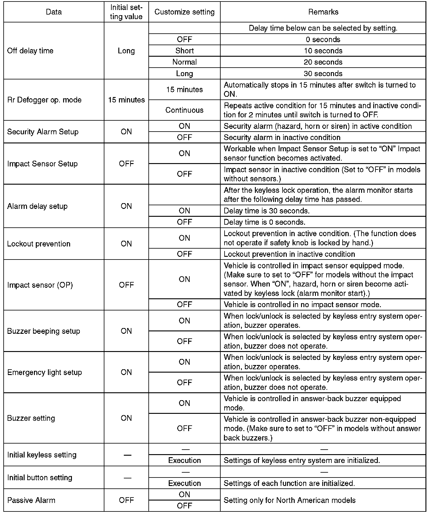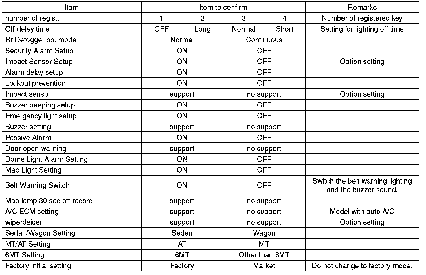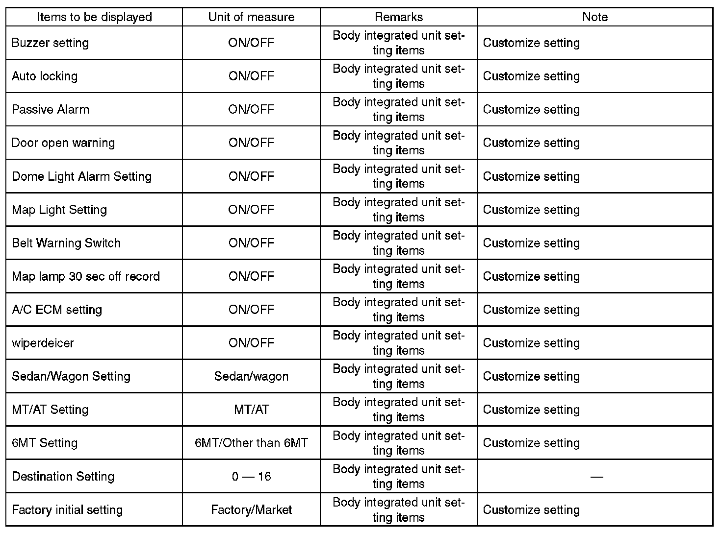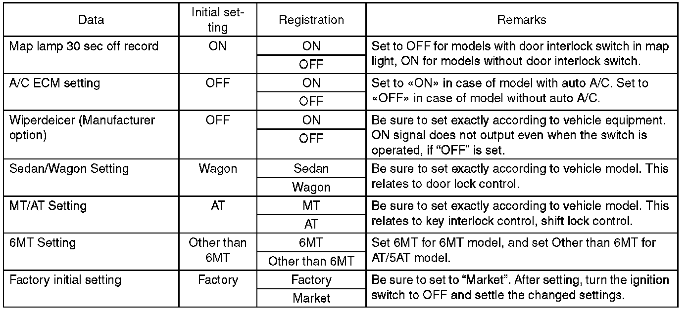 - Be sure not to change Factory initial setting except when installing a new body integrated unit.