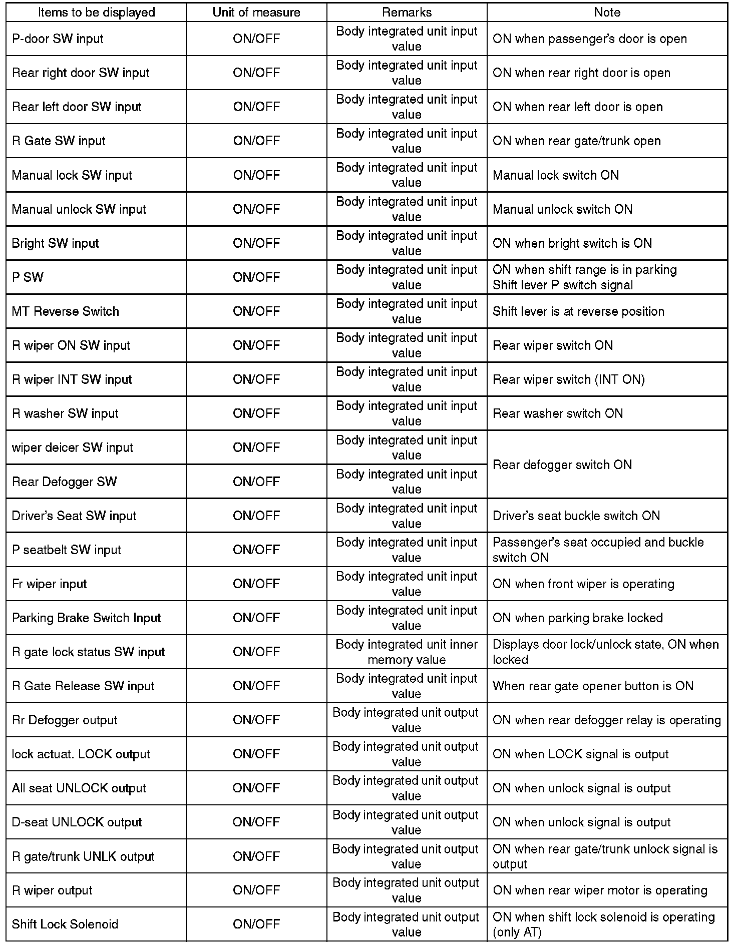 - Be sure to register immobilizer if body integrated unit is replaced with a new part. (models with immobilizer)