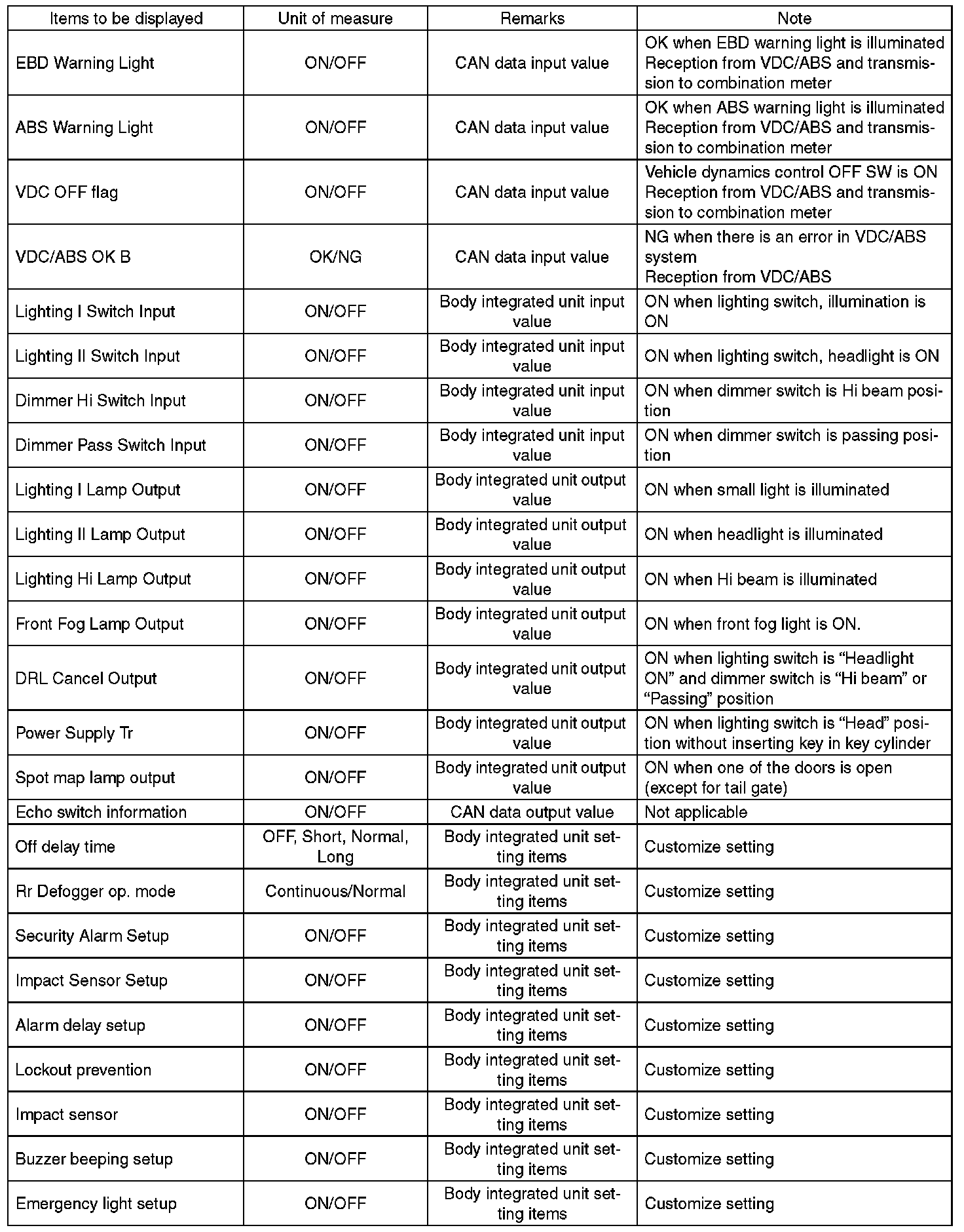 Body integrated unit is core of LAN system, and also can select the function of all vehicle system control. It is possible to control the original functions of vehicle when registrations of body integrated unit and function setting are corresponded to vehicle equipment.