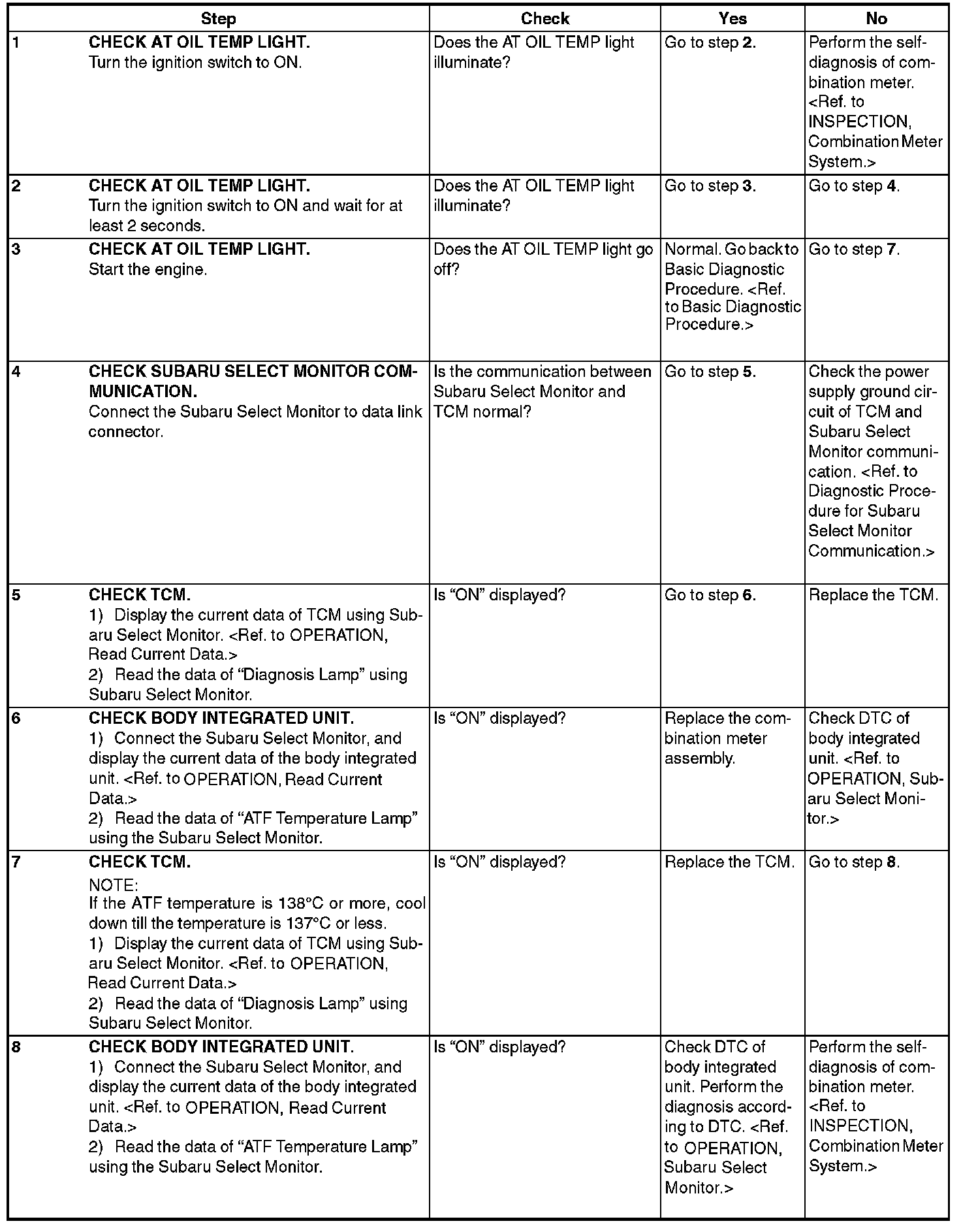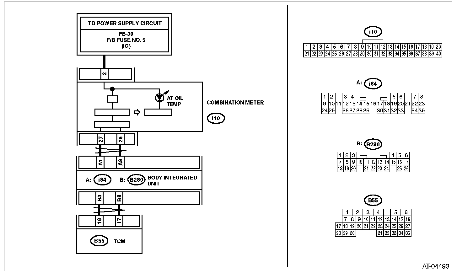 When the AT OIL TEMP light does not operate normally, check the AT OIL TEMP light circuit. AT Oil Temp Warning Light Display