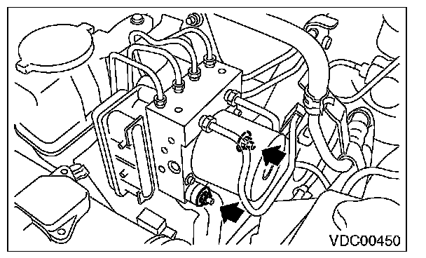 2) To prevent entry of foreign objects and brake fluid leakage, plug the oil pressure port of the VDCCM&H/U using a screw plug, etc.