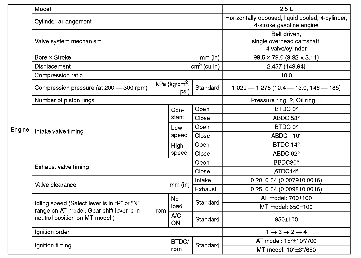 Outback Sport F4-2.5L SOHC