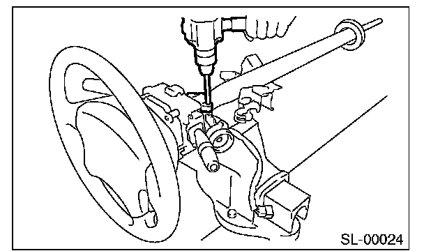 3. Secure the steering column in a vise. Remove the bolt with a drill.