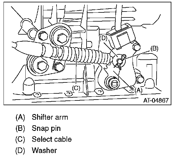 7) Using the ST, remove the spring pin and remove the shifter arm.