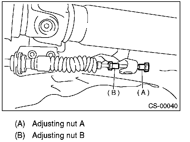 8) Set a spanner wrench to adjusting nut B so that it does not rotate, and then tighten the adjusting nut A.