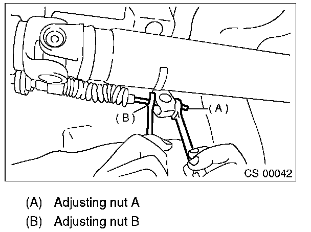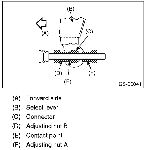 9) After the completion of adjustment, confirm that the select lever operates normally at all ranges.