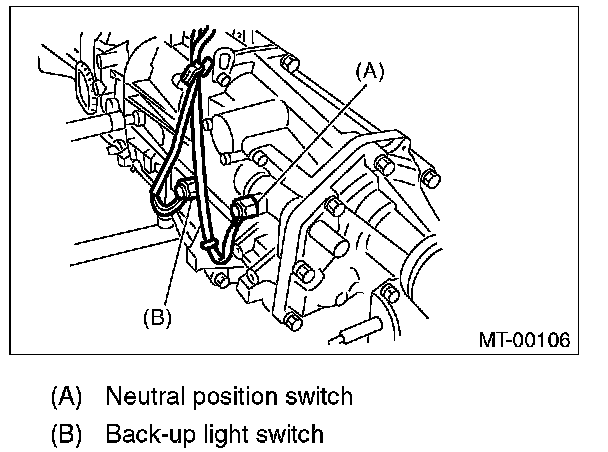 5) Remove the back-up light switch & neutral position switch with the harness.