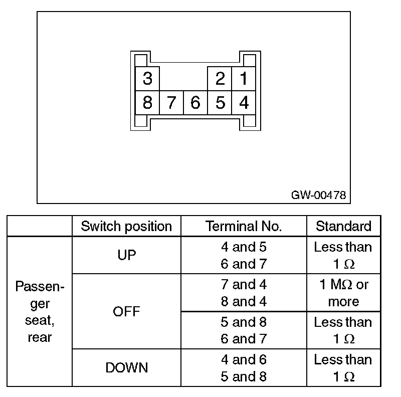 3. Replace the power window sub-switch if the inspection result is not within the standard value.