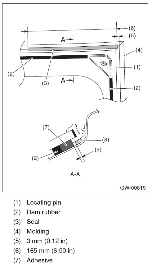5. Attach the seal to the glass. (driver's side only)