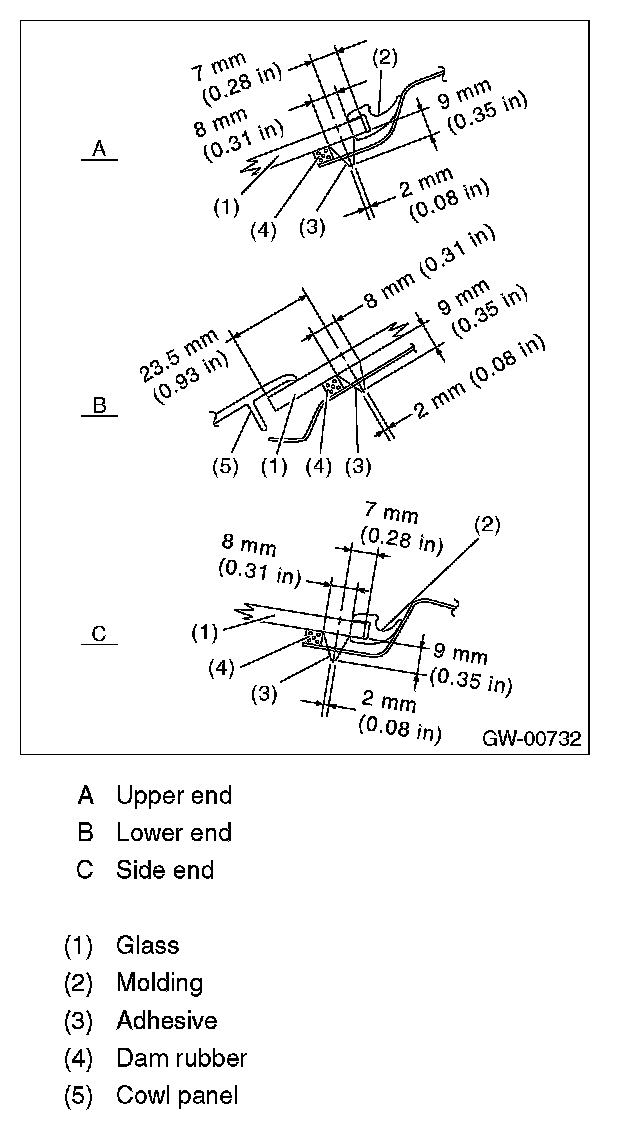 - For minimum drying time and vehicle standing time before driving after bonding, follow instructions or instruction manual from the adhesive manufacturer.