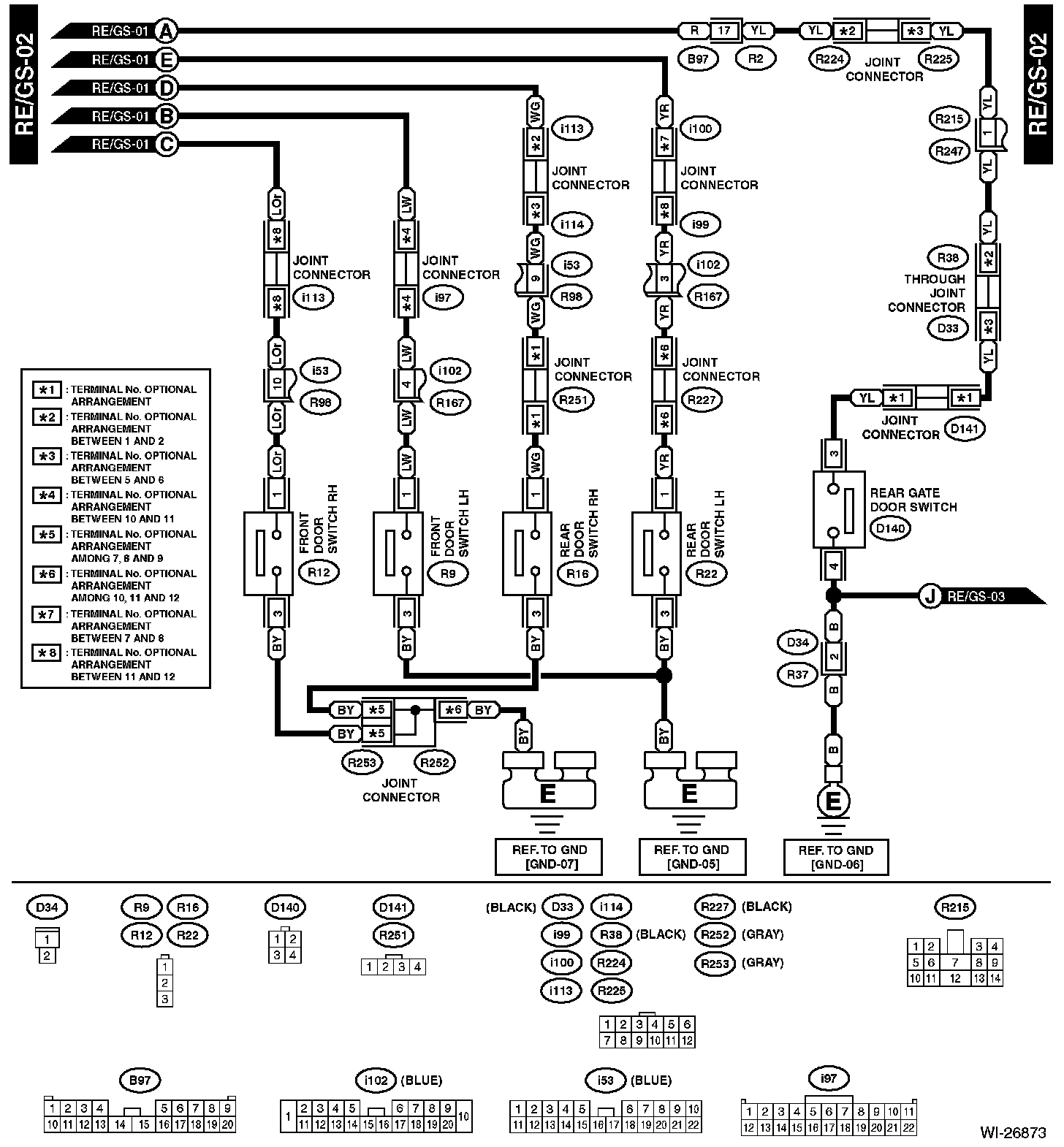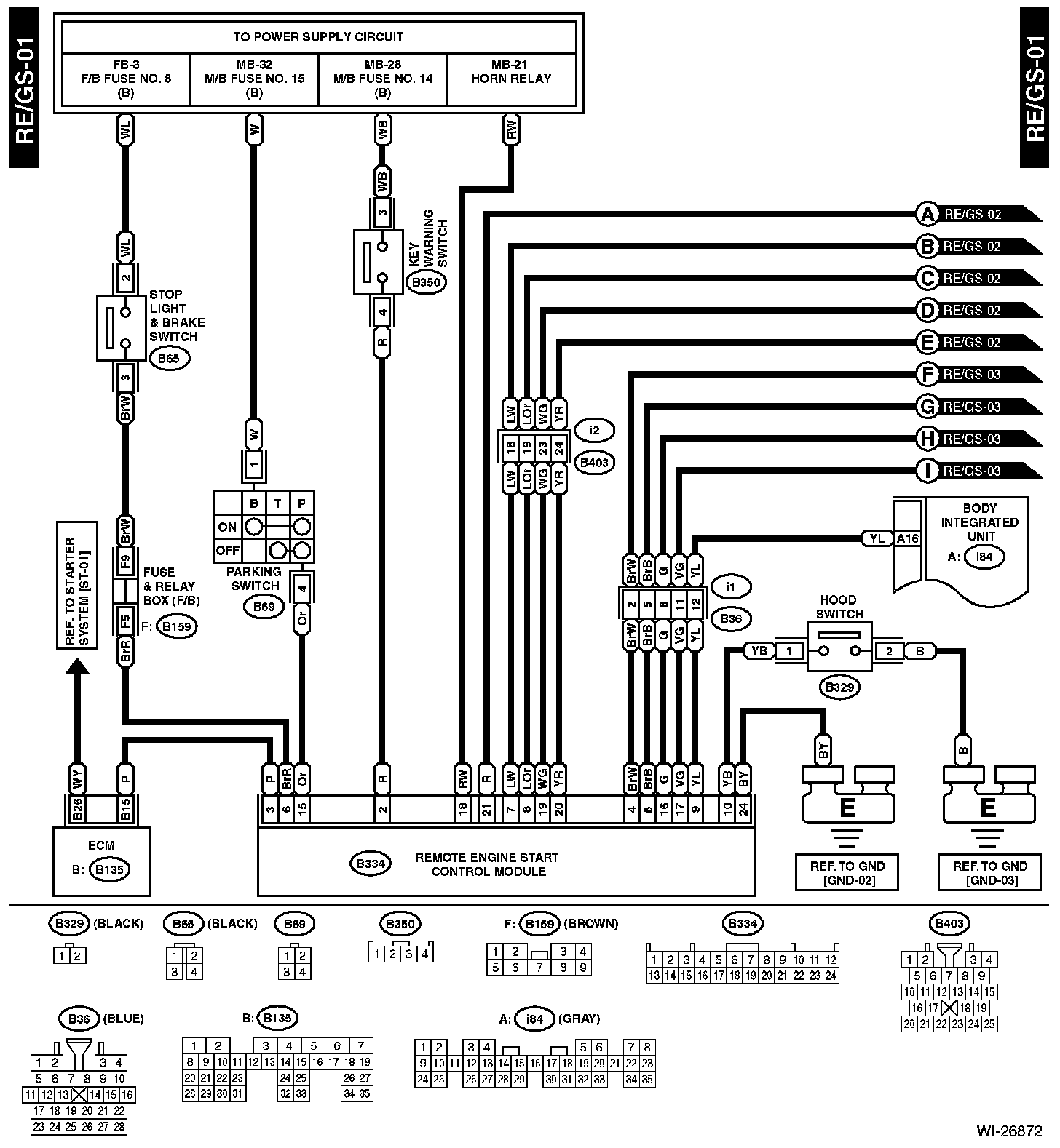 The locations of the Connectors or Grounds shown within these diagrams can be found via the connector or ground number at Vehicle Locations.