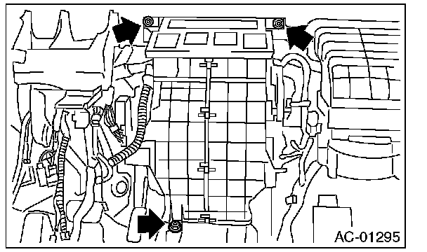 4. Remove the bolts securing expansion valve and pipe in engine compartment. Release the heater hose clamps in engine compartment to remove the hoses.