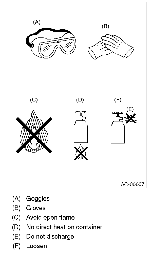 - Do not drop or subject a service can to impacts. (Observe the precautions and operation procedure described on the refrigerant can.)