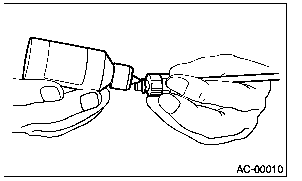If CFC-12 compressor oil is used in the HFC-134a A/C system, the compressor may become stuck due to poor lubrication, or the refrigerant may leak due to swelling of rubber parts.