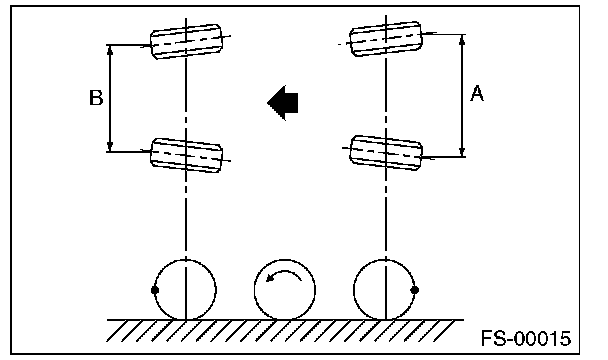 2) Place a mark at the center of both left and right tires, and measure distance "A" between the marks.