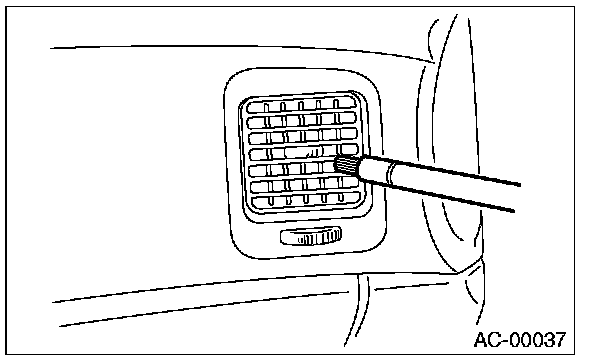 11. Turn the ignition key to the ON position, and run the blower at high speed for approx. 1 minute. Stop the blower to check the ventilation grille on the instrument panel. While moving the tester closer to the grille, run the blower for 1 or 2 seconds, then stop it. Check the grille at that position for at least 10 seconds.