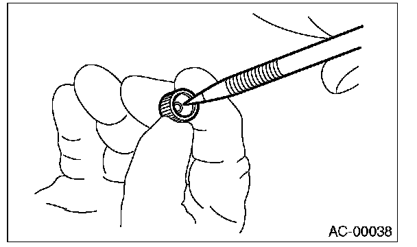 1. At engine speed below 1500 rpm, operate the A/C system for approx. 10 minutes, and confirm that the high-side pressure shows at least 690 kPa (7.03 kg/cm2, 100 psi). Then stop the engine to start the leak test.