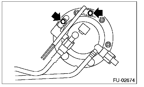 8. Remove the nuts securing the fuel sub level sensor upper plate to the fuel tank and remove the fuel sub level sensor upper plate.