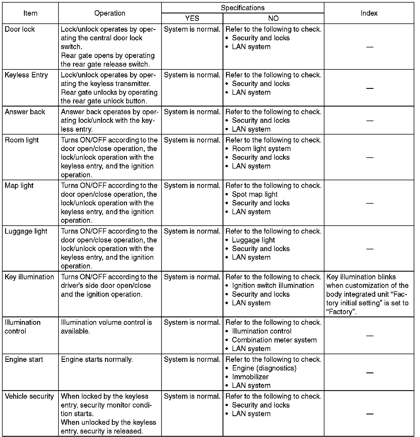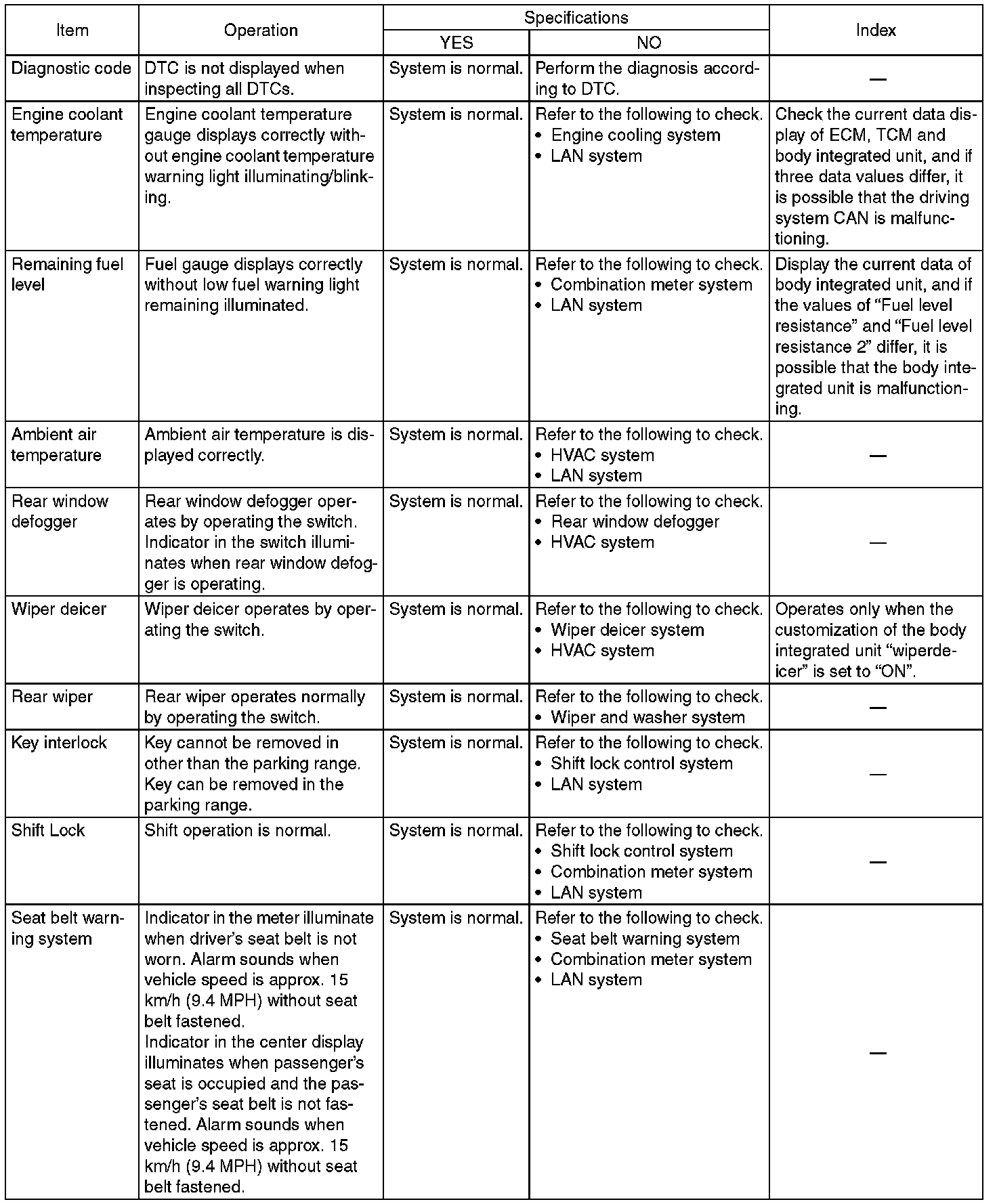 General Diagnostic Table