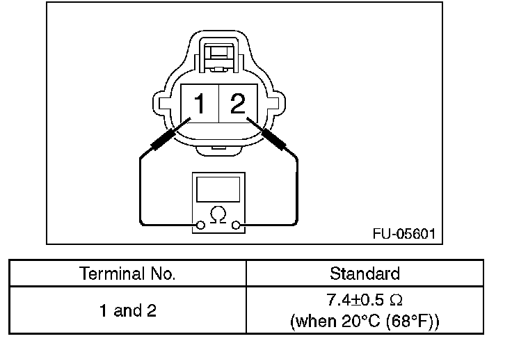 2. Measure the resistance between the oil flow control solenoid valve terminals.