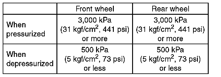 15) Read the values indicated on the pressure gauges and check if it is within specification. Depress the brake pedal and check that it is not abnormally hard, and tightness is normal.