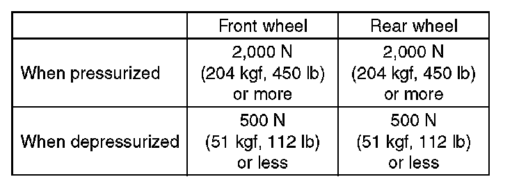 8) After the inspection, depress the brake pedal and check that it is not abnormally hard, and tightness is normal.