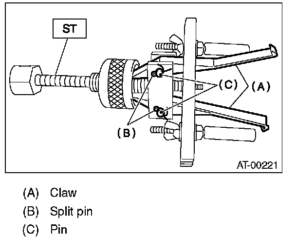 6) Hold the shaft of ST to avoid removing from side retainer, and then remove the bearing outer race.