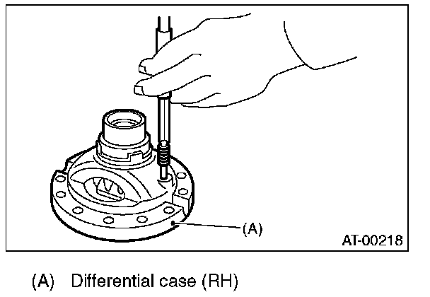 1) Install the washer, differential bevel gear and differential bevel pinion in the differential case (RH). Insert the pinion shaft.