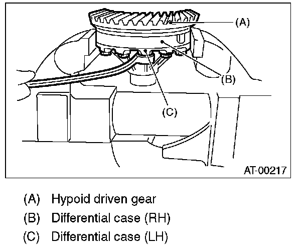 1) When installing the front differential assembly to case, be careful not to damage the inside of case (particularly, the differential side retainer mating surface).