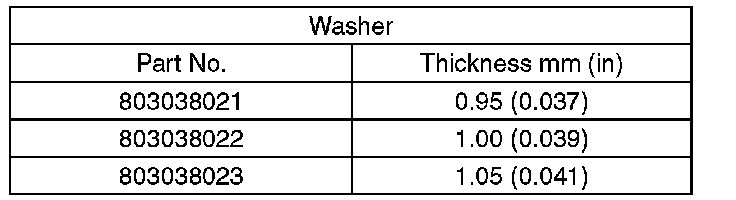 (3) If the backlash is not within specification, select a washer from the table below.