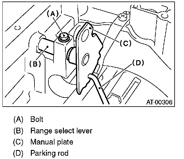 9) Remove the bolts securing range select lever, and then remove the select lever, manual plate and parking rod.